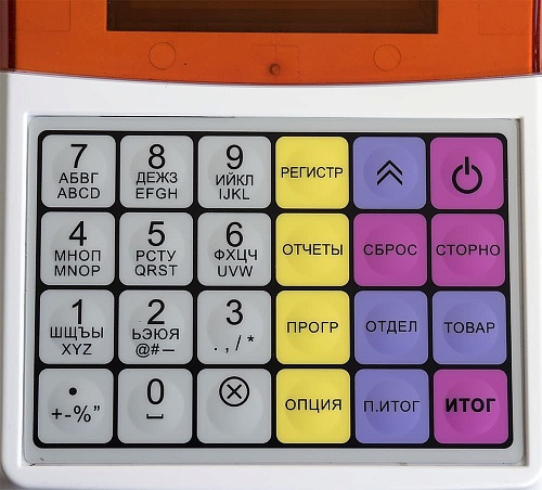 На всех клавишах нанесены надписи, это удобно при работе кассира.