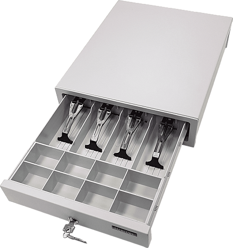 4. Механизм блокировки: денежный ящик оснащен надежным замком, который обеспечивает защиту содержимого от кражи или несанкционированного доступа.