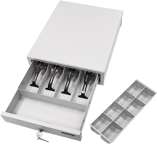 1. Емкость: ящик имеет 8 отделений для монет и 4 отделения для купюр, что позволяет эффективно хранить и обрабатывать денежные средства.