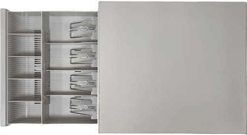 4 отделения для банкнот оборудованы металлическими фиксаторами, а 5 ячеек для монет имеют удобный покатый край. Размер всех отсеков регулируется до необходимой ширины. Трёхпозиционный электромеханический замок рассчитан на 1 000 000 циклов открытия.