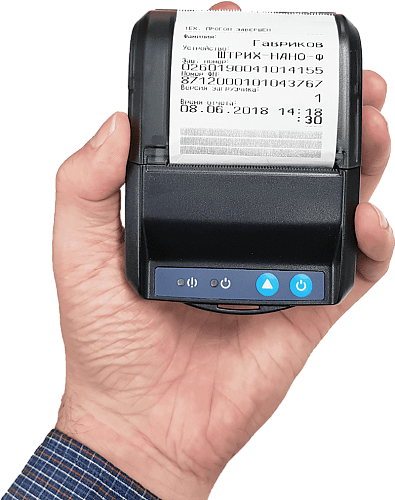 Карманный переносной фискальный регистратор со встроенным фискальным накопителем на 36 месяцев, встроенным аккумулятором и передачей данных в налоговую инспекцию онлайн.